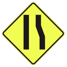Aproximación a un angostamiento al lado izquierdo de la calzada